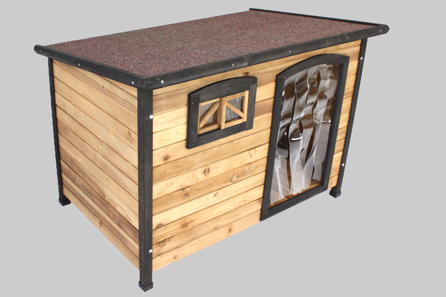 Available in 5 different sizes. Cedar Fir wood, sturdy design, lift up roof, plastic curtains, rubber feet and raised off the ground. Tough weather resistant Asphalt roof. Insulated against hot summer and cold winter. Suitable for both indoor and outdoor.